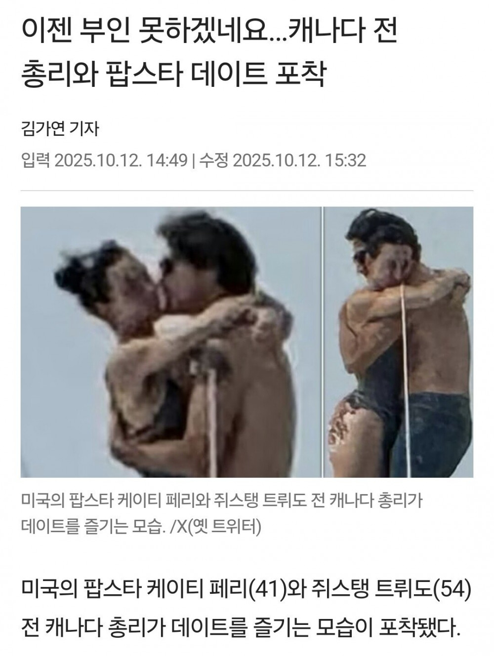 이젠 부인 못하겠네요…캐나다 전 총리와 팝스타 데이트 포착